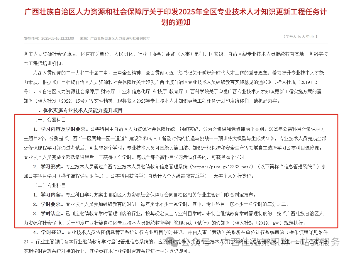 申报职称注意啦!广西人社厅发布:2025年专业技术人员继续教育新政出炉,已开通学习