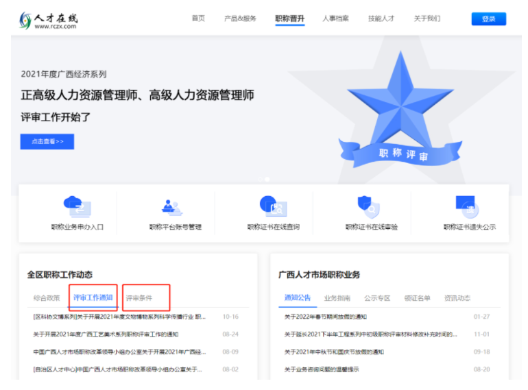 方式二:登录“人才在线网站,“职称晋升”查看评审工作通知或评审条件。