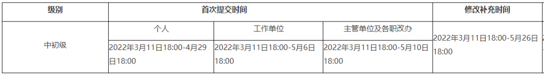 3、主管单位及各职改办首次提交时间:2022年3月11日18:00-5月10日18:00