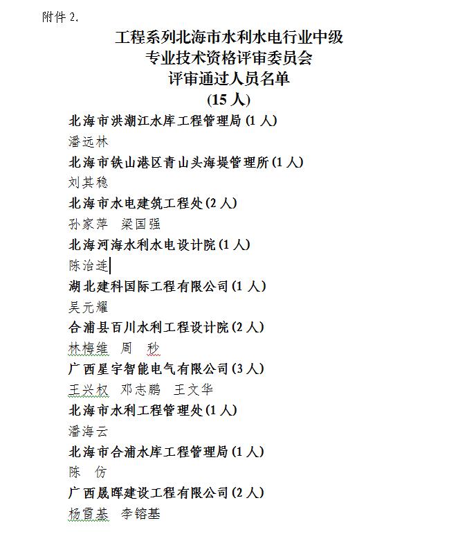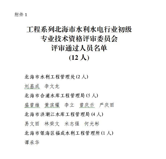 北海水利局-2021年度工程系列北海市水利水电行业初、中级职称评审结果进行公示的公告
