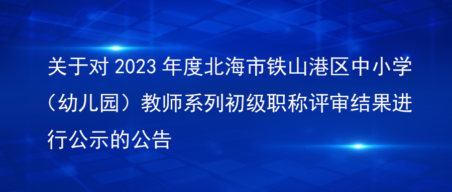 关于对2023年度北海市铁山港区中小学(幼儿园)教师系列初级职称评审结果进行公示的公告