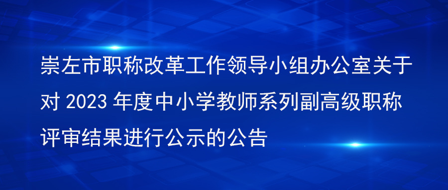 崇左市职称改革工作领导小组办公室关于对2023年度中小学教师系列副高级职称评审结果进行公