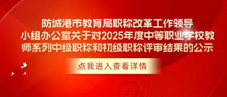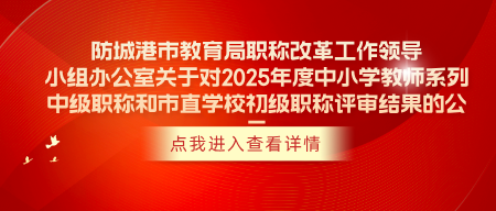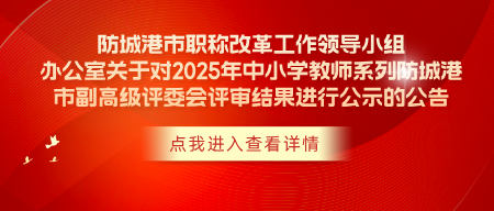 根据我市 2025 年度中小学教师系列职称评审情况,现决定对防城港市 2025 年度中小学教师系列副高级职称评审结果进行公示。公示时间为本