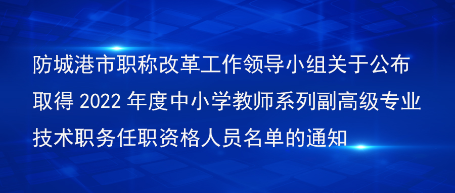 防城港市职称改革工作领导小组关于公布取得2022年度中小学教师系列副高级专业技术职务任职
