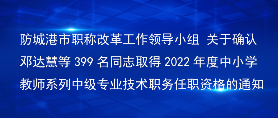 防城港市职称改革工作领导小组 关于确认邓达慧等399名同志取得2022年度中小学教师系列中级专