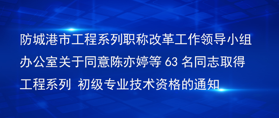 各有关单位: 经防城港市工程系列初级专业技术职务评审委员会评审通过, 防城港市工程系列职称改革工作领导小组批准, 同意陈亦婷等
