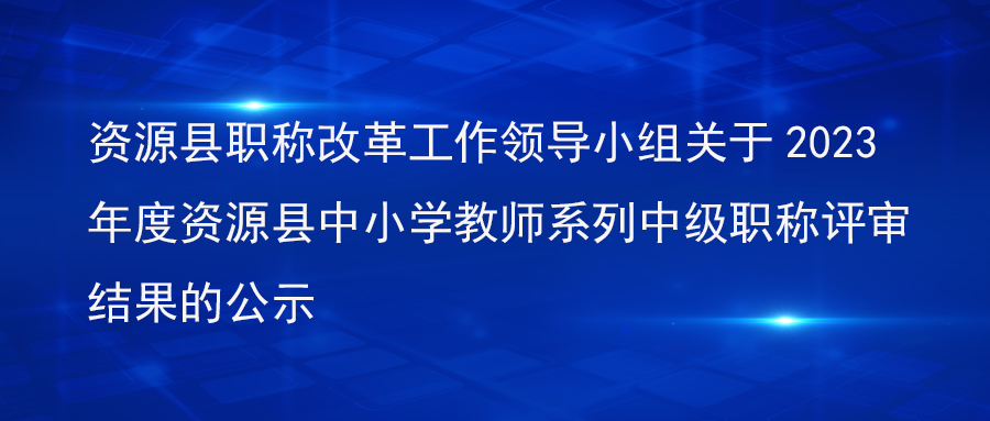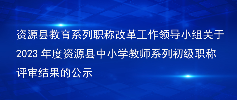资源县教育系列职称改革工作领导小组关于2023年度资源县中小学教师系列初级职称评审结果的