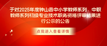 于对2025年度钟山县中小学教师系列、中职教师系列初级专业技术职务资格评审结果进行公示的