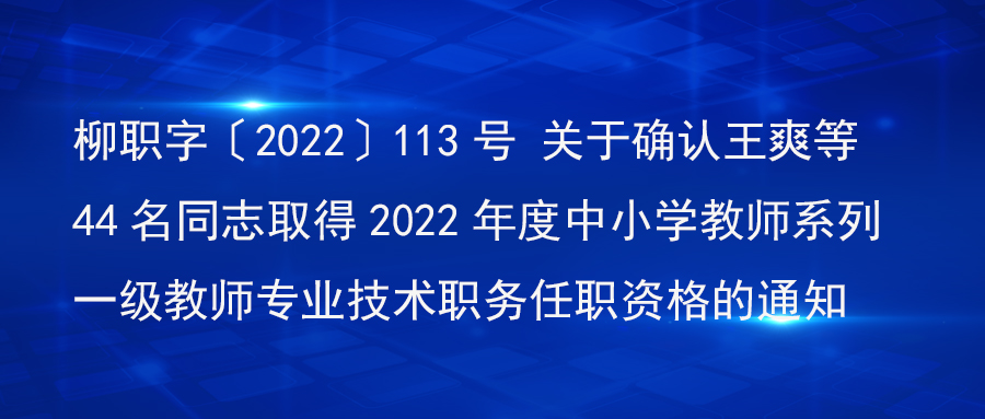 柳职字〔2023〕16号 关于确认周海川等107名同志取得2022年度中小学教师系列一级教师专业技术职务任职资格的通知