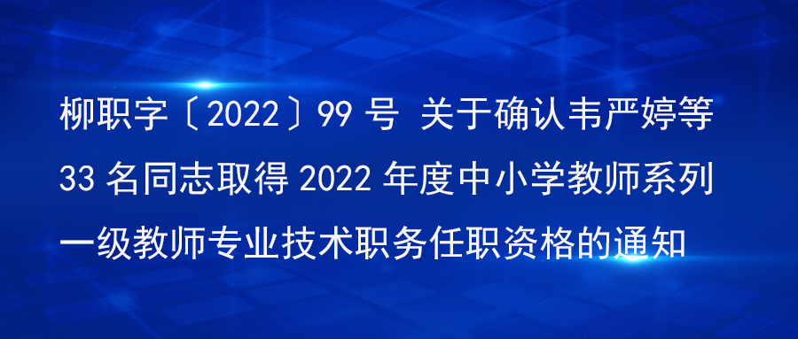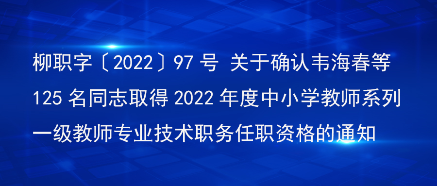 柳职字〔2022〕97号 关于确认韦海春等125名同志取得2022年度中小学教师系列一级教师专业技术职