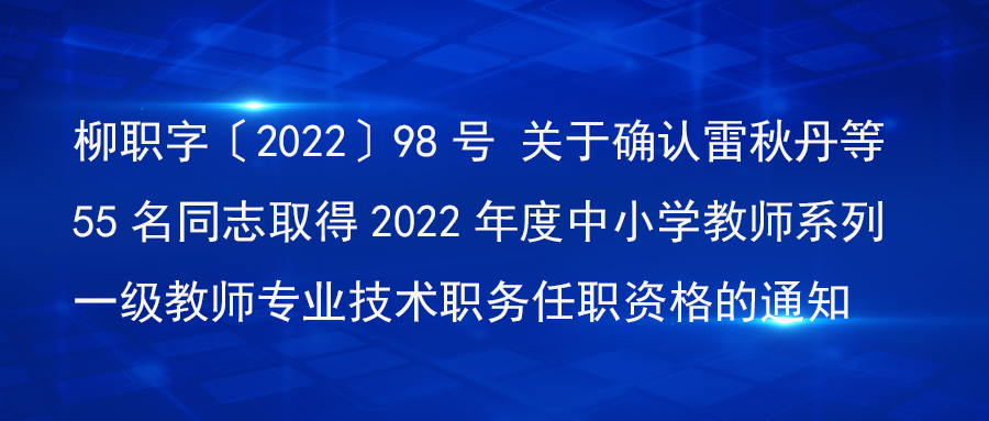柳职字〔2022〕98号 关于确认雷秋丹等55名同志取得2022年度中小学教师系列一级教师专业技术职
