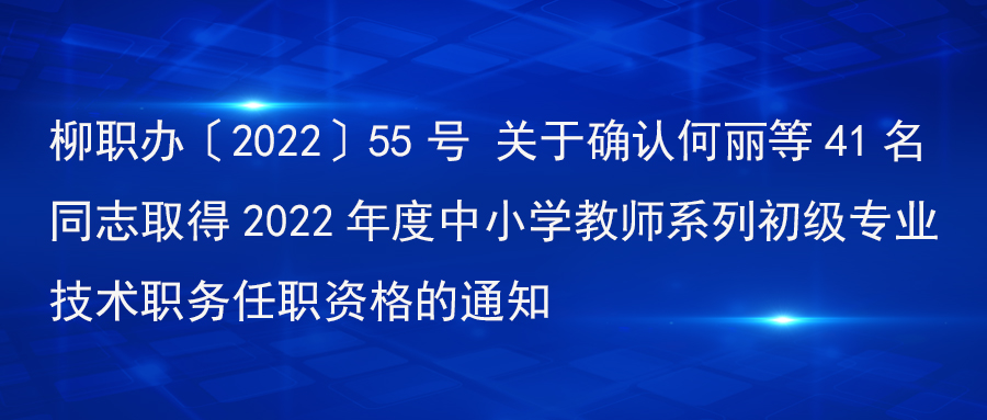 柳职办〔2022〕55号 关于确认何丽等41名同志取得2022年度中小学教师系列初级专业技术职务任职