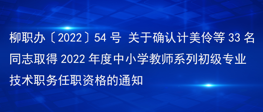 柳职办〔2022〕54号 关于确认计美伶等33名同志取得2022年度中小学教师系列初级专业技术职务任