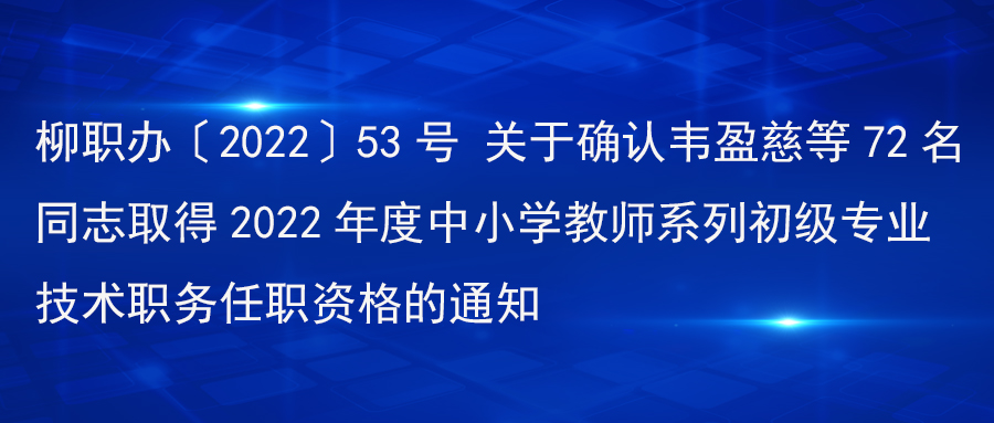 柳职办〔2022〕53号 关于确认韦盈慈等72名同志取得2022年度中小学教师系列初级专业技术职务任