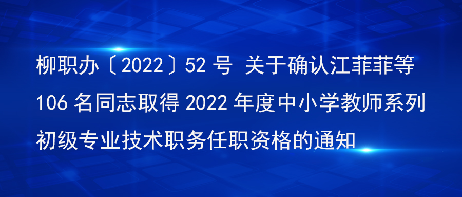 柳职办〔2022〕52号 关于确认江菲菲等106名同志取得2022年度中小学教师系列初级专业技术职务任