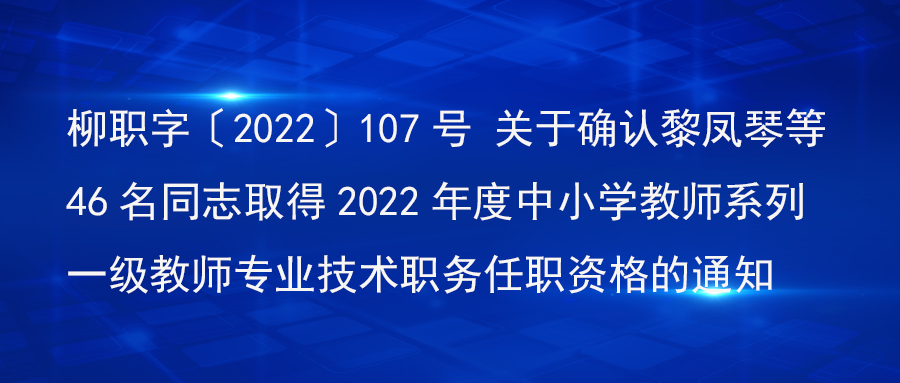 柳职字〔2022〕107号 关于确认黎凤琴等46名同志取得2022年度中小学教师系列一级教师专业技术职