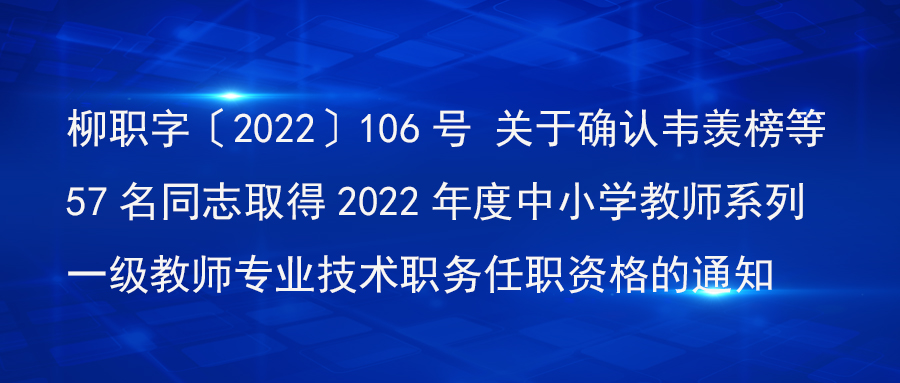 柳职字〔2022〕106号 关于确认韦羡榜等57名同志取得2022年度中小学教师系列一级教师专业技术职