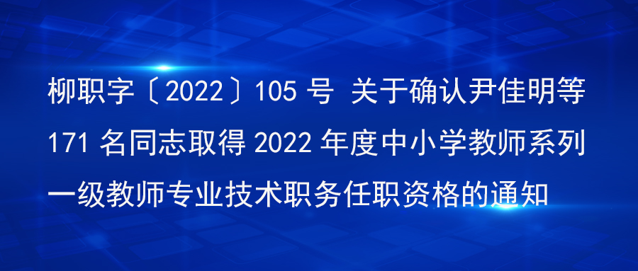 柳职字〔2022〕105号 关于确认尹佳明等171名同志取得2022年度中小学教师系列一级教师专业技术