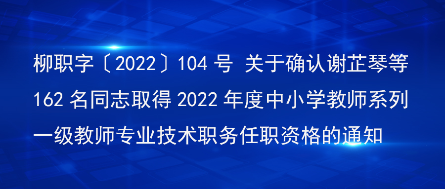 柳职字〔2022〕104号 关于确认谢芷琴等162名同志取得2022年度中小学教师系列一级教师专业技术