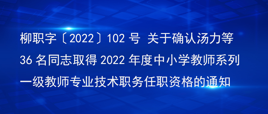 柳职字〔2022〕102号 关于确认汤力等36名同志取得2022年度中小学教师系列一级教师专业技术职务