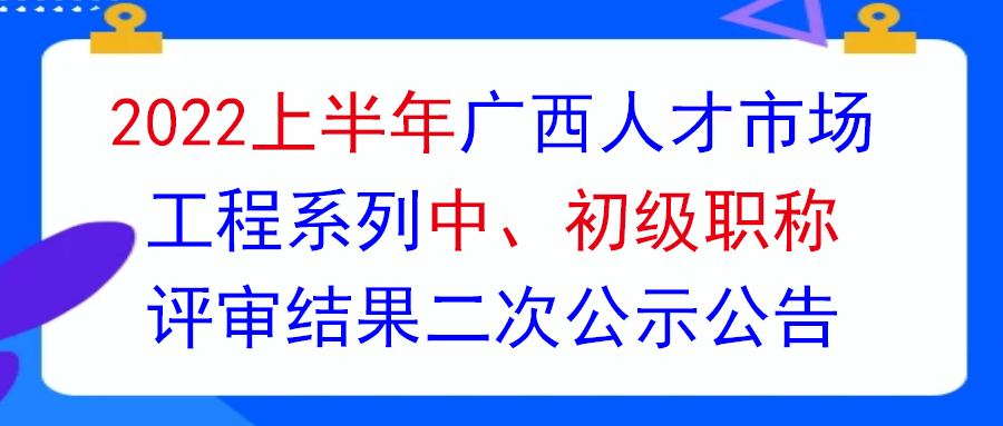 关于对2022上半年中国广西人才市场工程系列中初级职称评审结果进行二次公示的公告