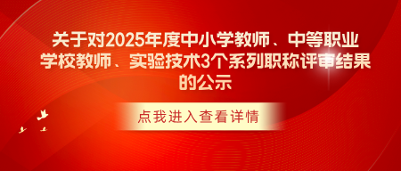 关于对2025年度中小学教师、中等职业学校教师、实验技术3个系列职称评审结果的公示