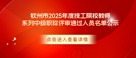 钦州市2025年度技工院校教师系列中级职称评审通过人员名单公示