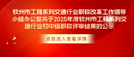 钦州市工程系列交通行业职称改革工作领导小组办公室关于2025年度钦州市工程系列交通行业初
