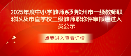 根据《钦州市人力资源和社会保障局关于做好2025年度全市职称评审工作的通知》的要求,为确保职称评审的公平公正,现对技工院校教师系列钦州市中级评审委员会2025年度的评审结果进行公示,公示期为本公示发布之日起5个工作日。