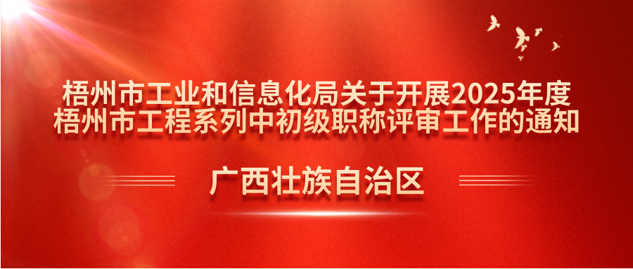 根据《广西壮族自治区工业和信息化厅关于开展2025年度广西工程系列高中初级职称评审工作的通知》(桂工信人事〔2025〕563号)、《南宁市人力资源和社会保障局关于做好2025年度全市职称评审工作的通知》(南人社函〔2025〕46号)及有关文件精神,为做好2025年度我市工程系列初级职称申报评审工作,现就有关事项通知如下: