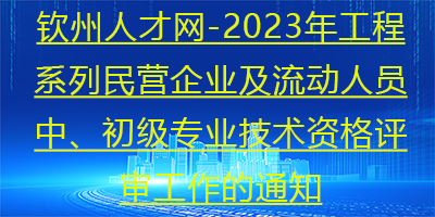 关于开展钦州市2023年工程系列民营企业及流动人员中、初级专业技术资格评审工作的通知