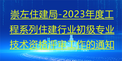 关于开展崇左市2023年度工程系列住建行业初级专业技术资格评审工作的通知(崇建职称字〔