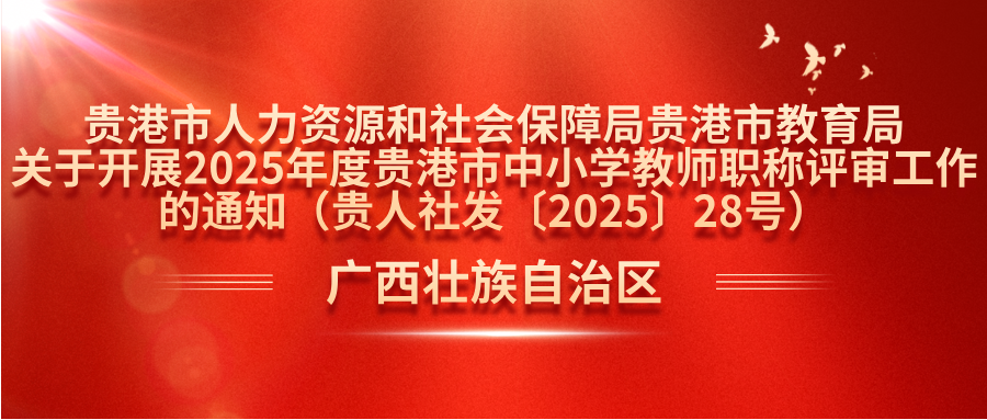 贵港市人力资源和社会保障局 贵港市教育局关于开展2025年度贵港市中小学教师职称评审工作的