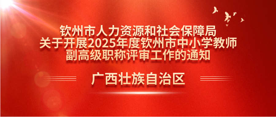 钦州市人力资源和社会保障局关于开展2025年度钦州市中小学教师副高级职称评审工作的通知