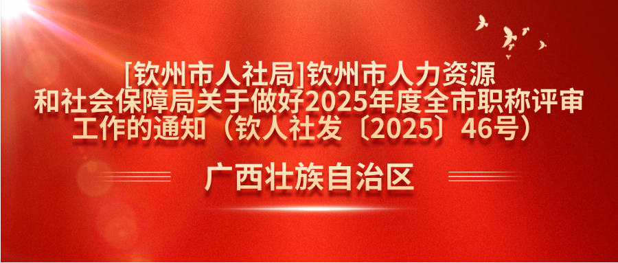 [钦州市人社局]钦州市人力资源和社会保障局关于做好2025年度全市职称评审工作的通知(钦人