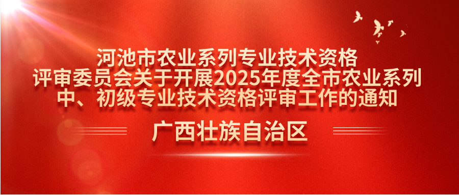 河池市农业系列专业技术资格评审委员会关于开展2025年度全市农业系列中、初级专业技术资格